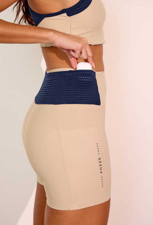 Bermuda bicolor bege árido e marinho multibolsos Gaia