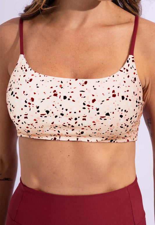 Top faixa dupla face marrom capuccino e estampado com bojo removível Aura