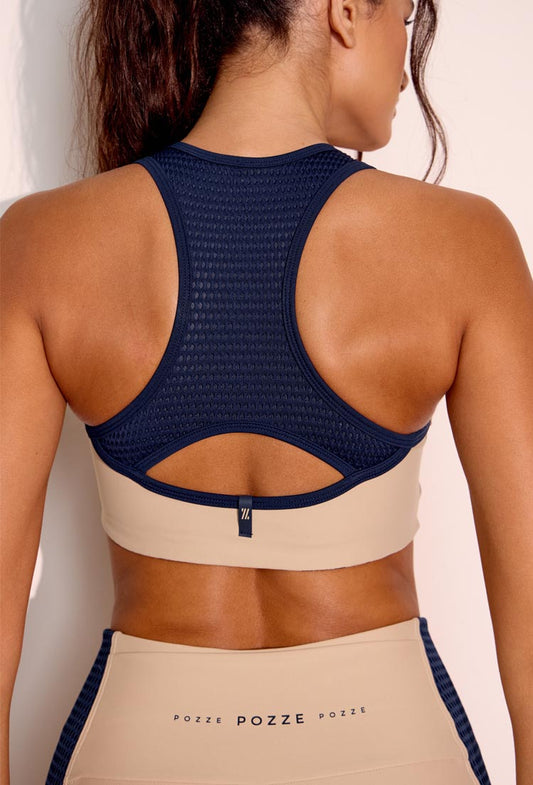 Top nadador bicolor bege árido e marinho com bojo removível Gaia