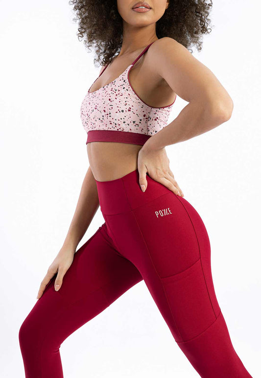 Legging vermelho carmim com detalhe luna no cós e bolsos VoÔ
