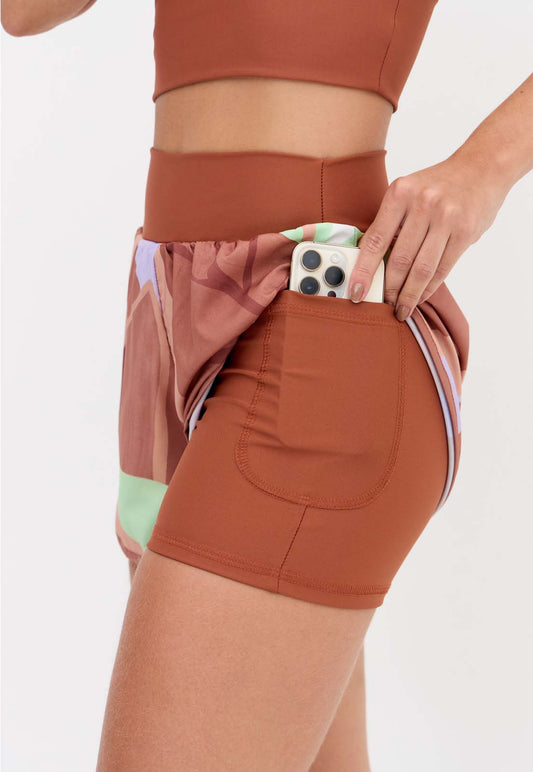 Short duplo estampado com bolso Anoitecer