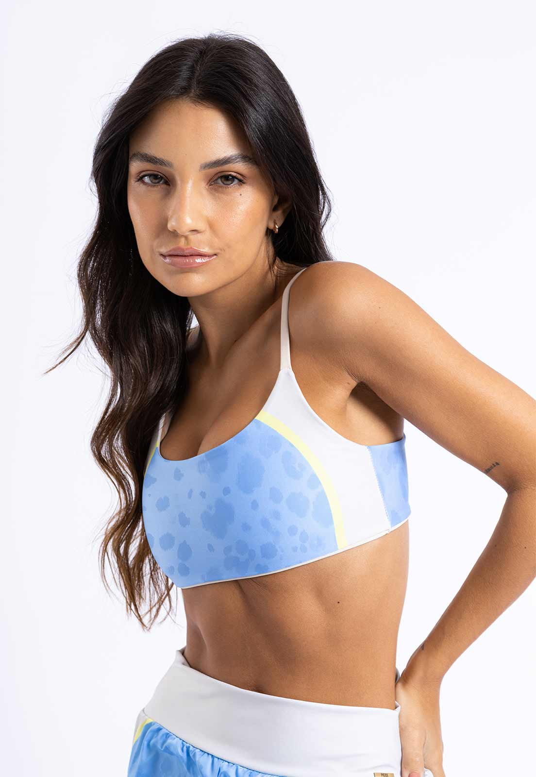 O Top Faixa Dupla Face Sinergia possui linda padronagem exclusiva. Pode serusado dos dois lados. Um lado liso e outro estampado. Compor um look com ele é certeza de um visual despojado e cheio de estilo e versatilidade. Não possui bojo.