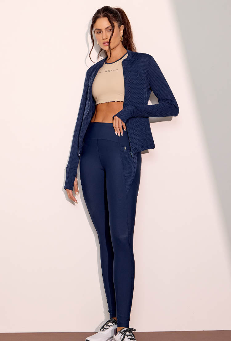 Jaqueta lisa marinho com textura e bolso Gaia