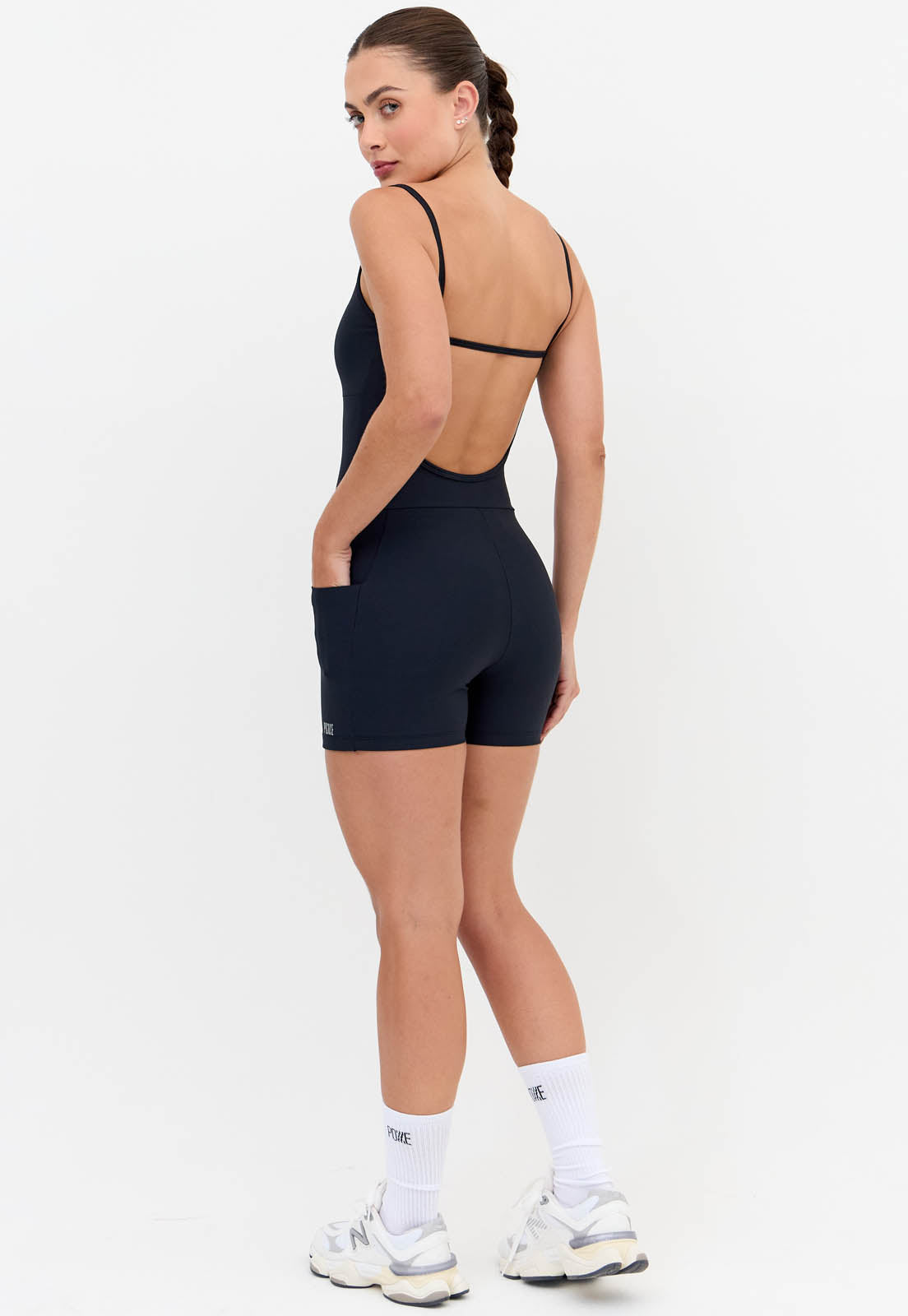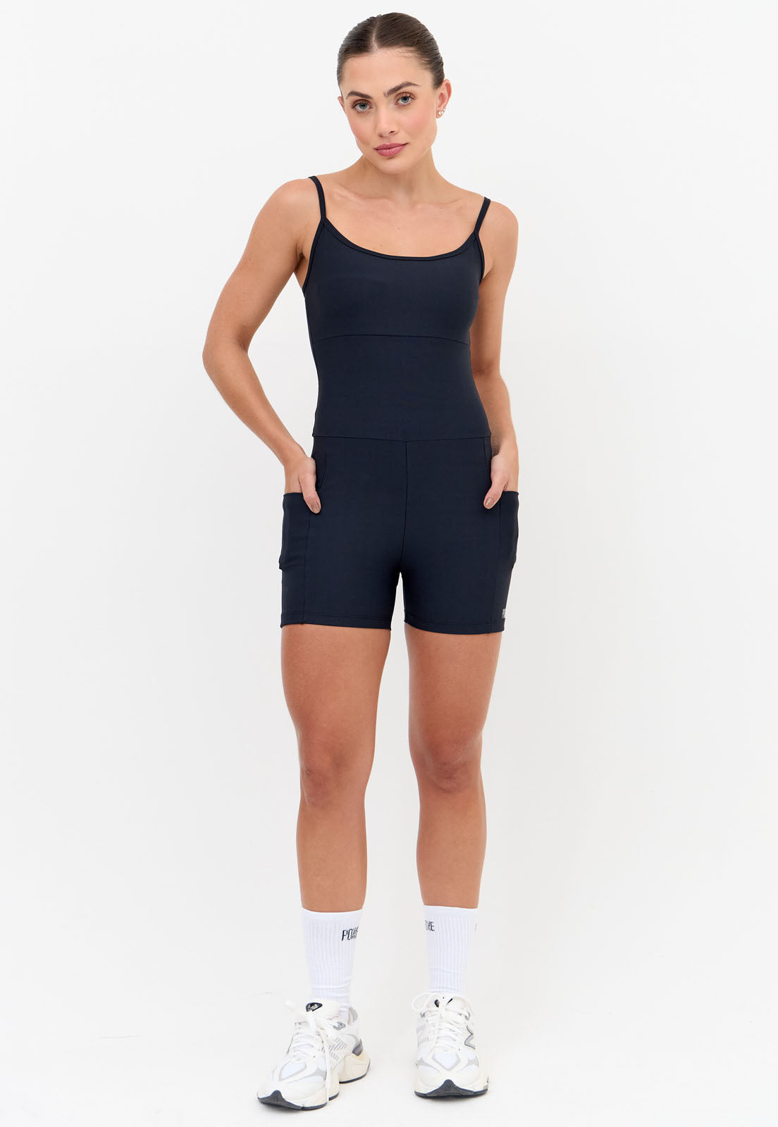 Macaquinho curto liso preto com bolsos Action