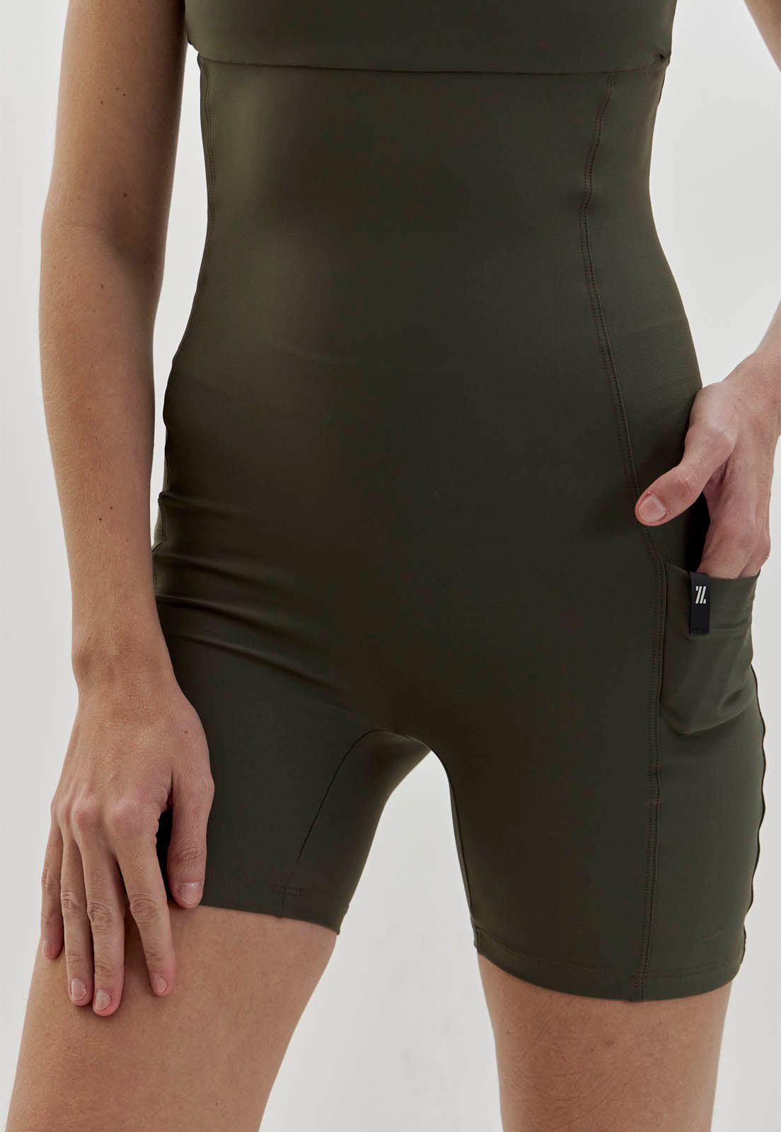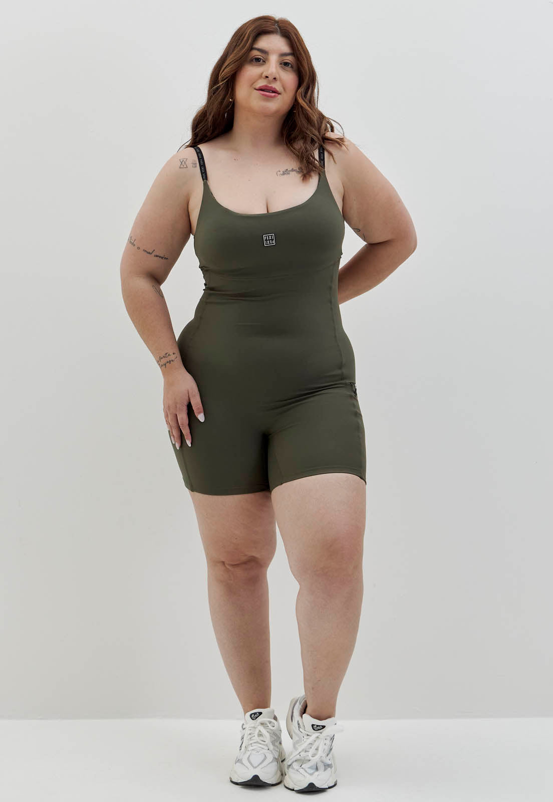 Macaquinho verde elite com bolsos e elástico personalizado Voá