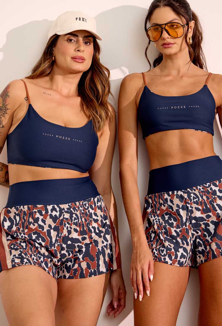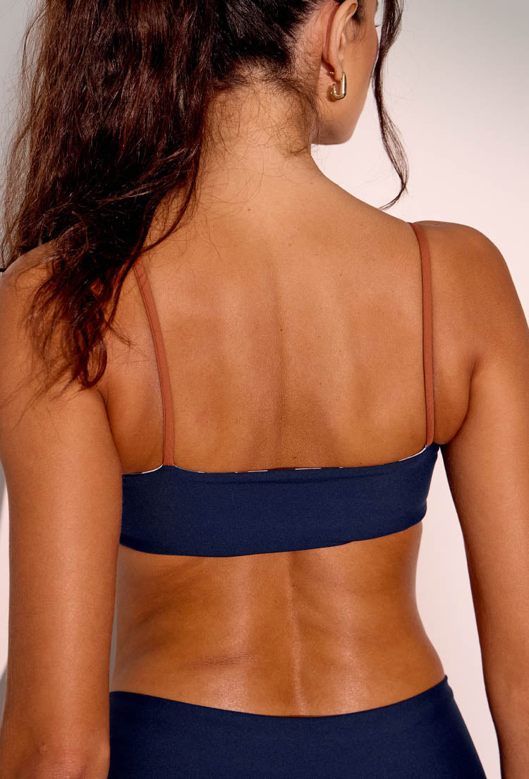 Top faixa dupla face marinho e estampado com bojo removível Gaia