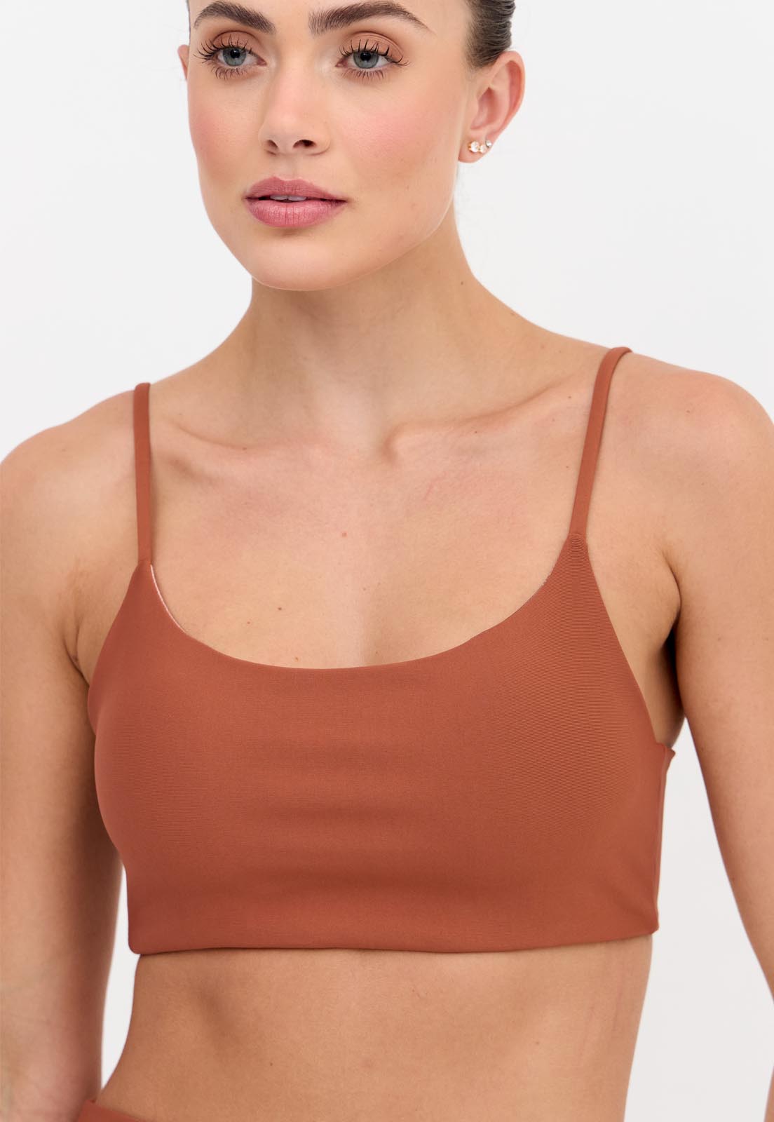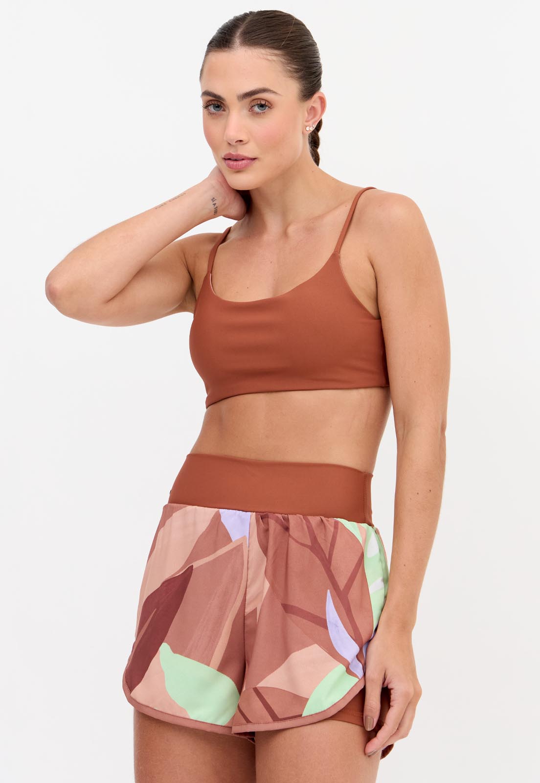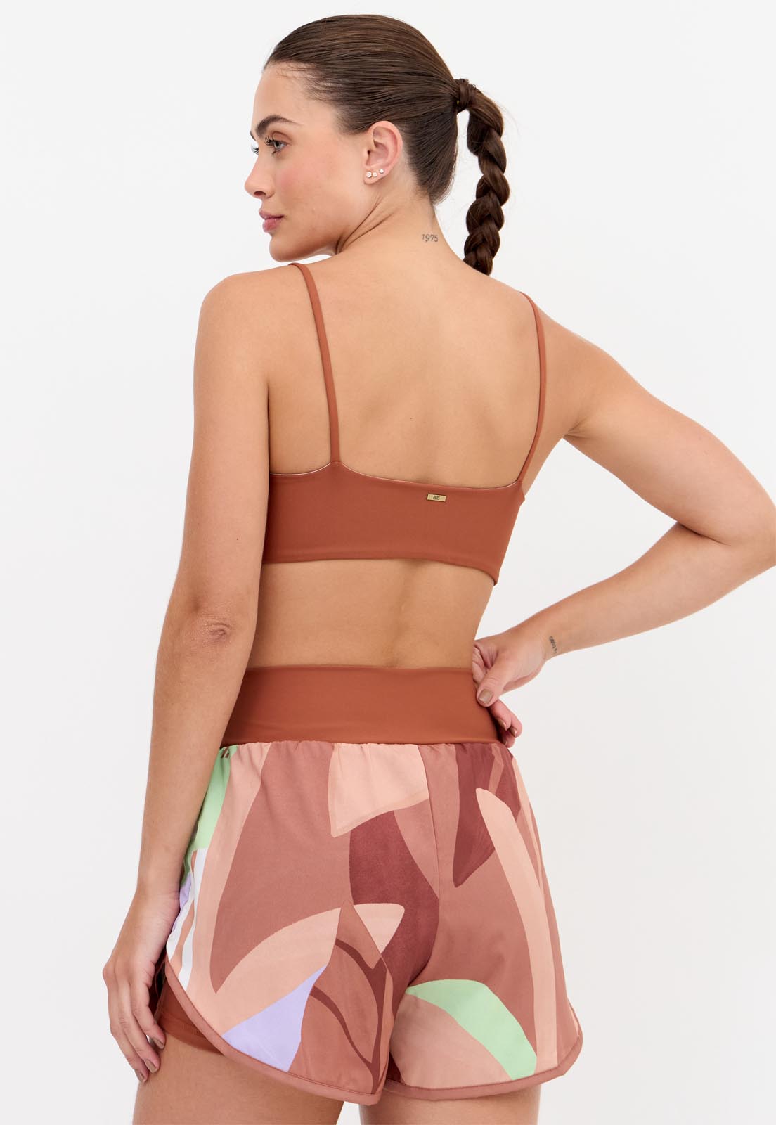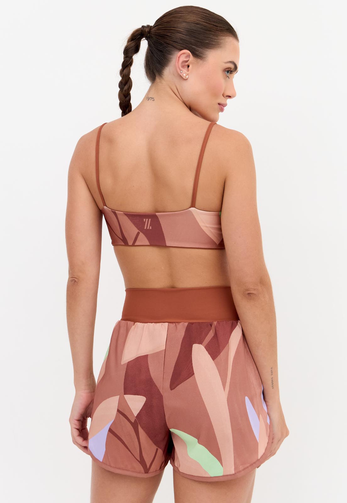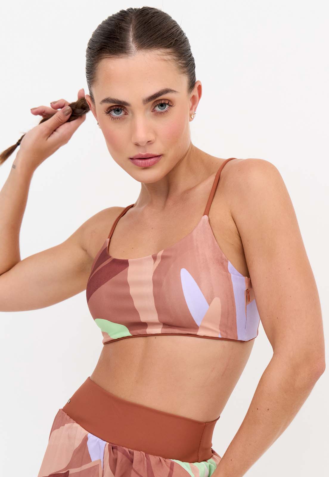Top faixa dupla face marrom capuccino e estampado com bojo removível Aura