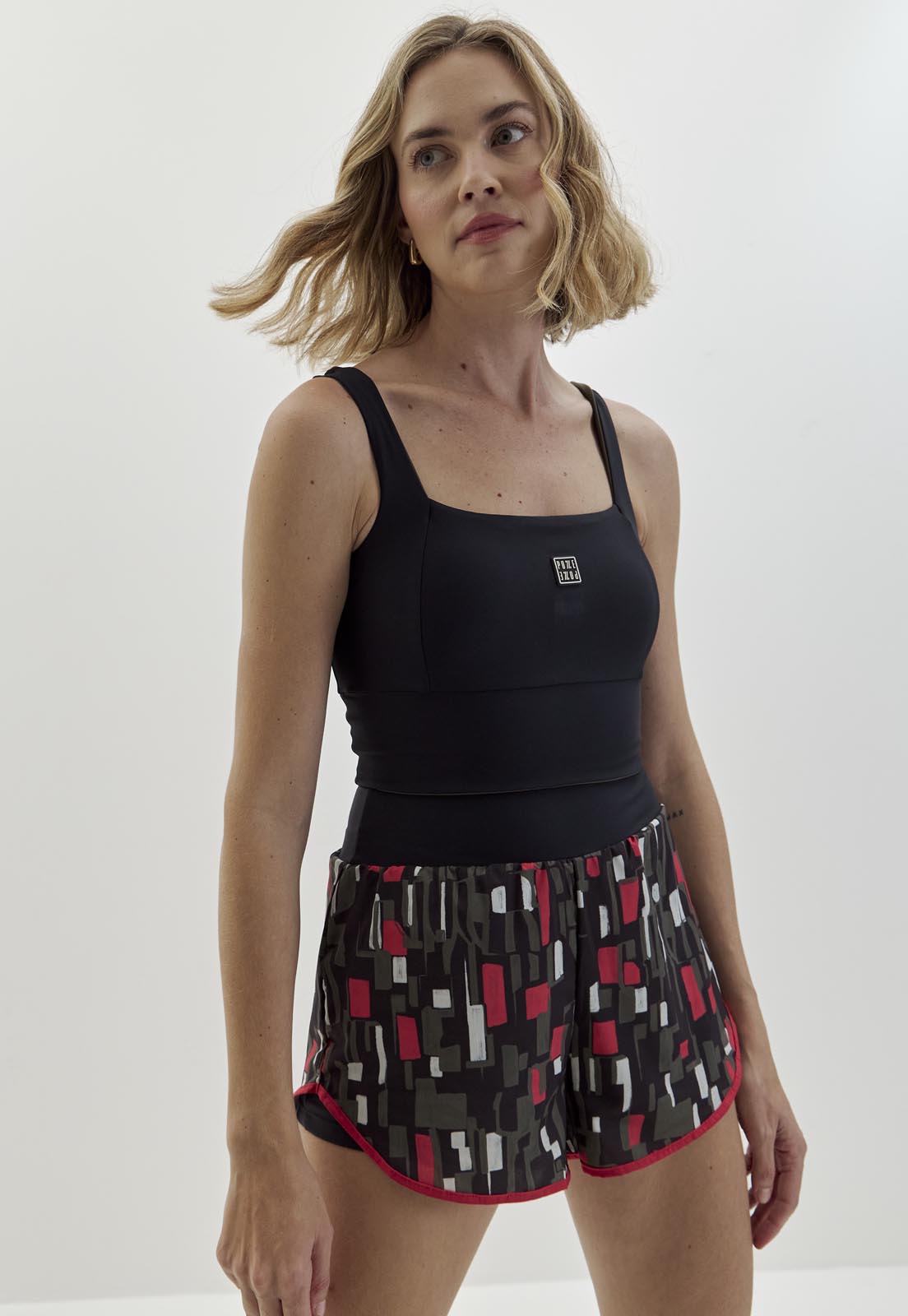 Top longo decote quadrado dupla face preto e verde elite com bojo removível Voá