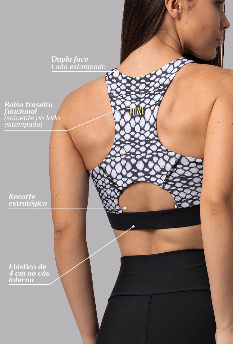 Top running dupla face com bolso estampa Action